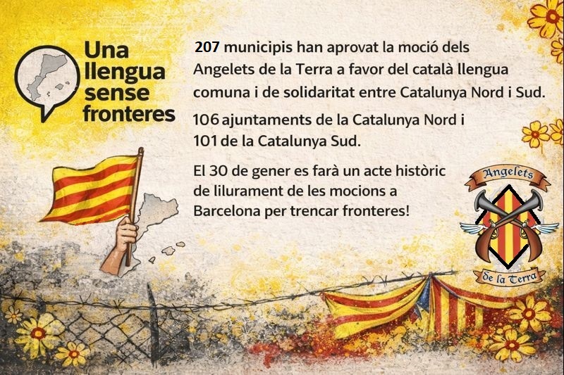 Depuis l’été 2025, l’association culturelle Angelets de la Terra a proposé aux 1 145 mairies de Catalogne Nord et de Catalogne Sud de s’unir autour d’une motion affirmant leur volonté de défendre ensemble la langue commune qu’est le catalan et de renforcer leurs liens d'amitié et de coopération.