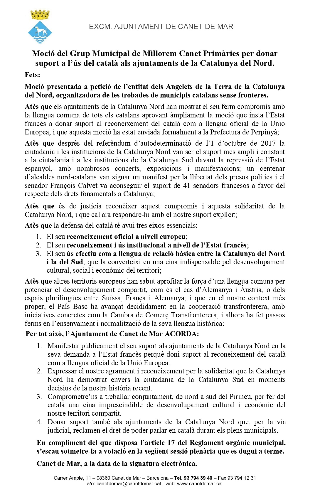 Avec cette approbation, Canet de Mar rejoint l’ensemble des communes qui œuvrent pour la défense de la langue catalane commune et pour le renforcement des liens entre tous les territoires du pays.