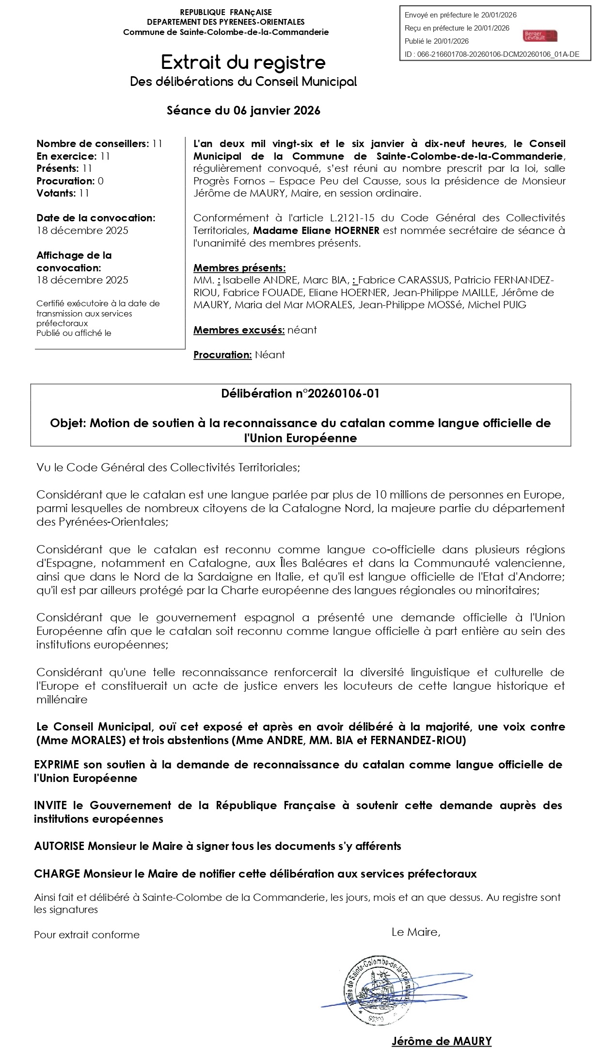 La décision approuvée par la mairie soutient la reconnaissance du catalan comme langue officielle de l’Union européenne. Elle affirme l’engagement de la commune en faveur de la diversité linguistique en France et en Europe, dans le cadre de la campagne des Angelets de la Terra : « Une langue sans frontières ».
