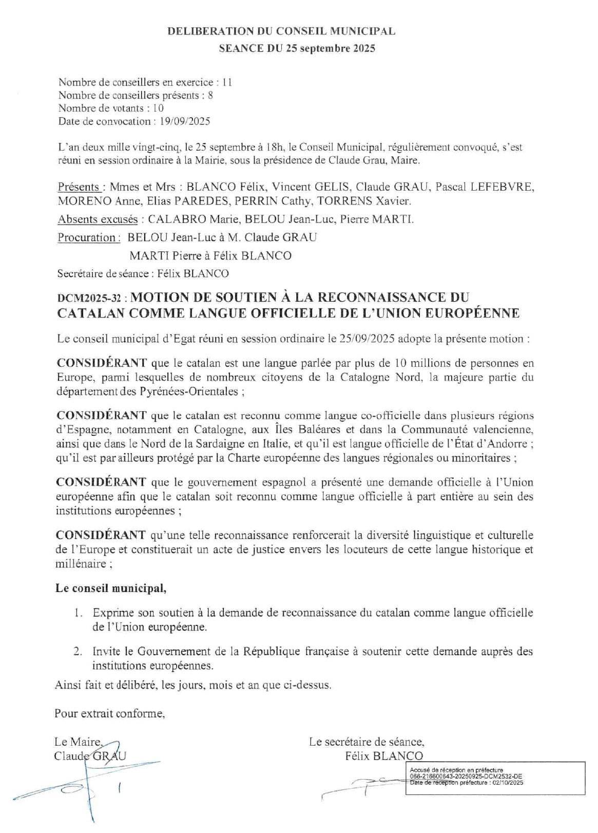 Le 25 septembre 2025, le conseil municipal d’Èguet a approuvé à l’unanimité la motion de soutien au catalan comme langue officielle de l’Union européenne. Une prise de position claire en faveur de la diversité linguistique et du reconnaissance des langues régionales.