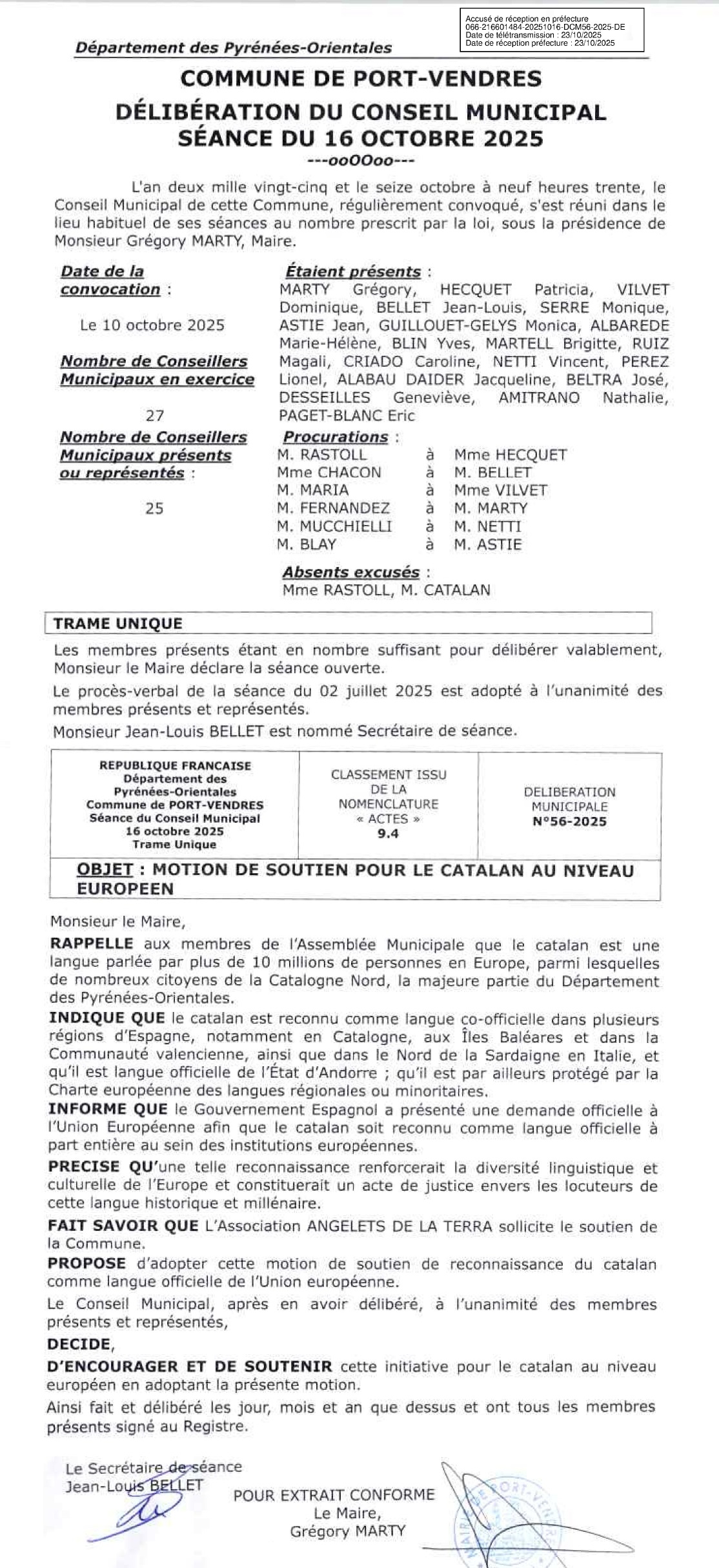 Le 16 octobre 2025, le conseil municipal de Portvendres (Catalogne Nord) a adopté à l’unanimité une motion soutenant la reconnaissance du catalan comme langue officielle de l’Union européenne. Cette décision, transmise à la préfecture, marque un engagement clair en faveur de la diversité linguistique en France et en Europe.