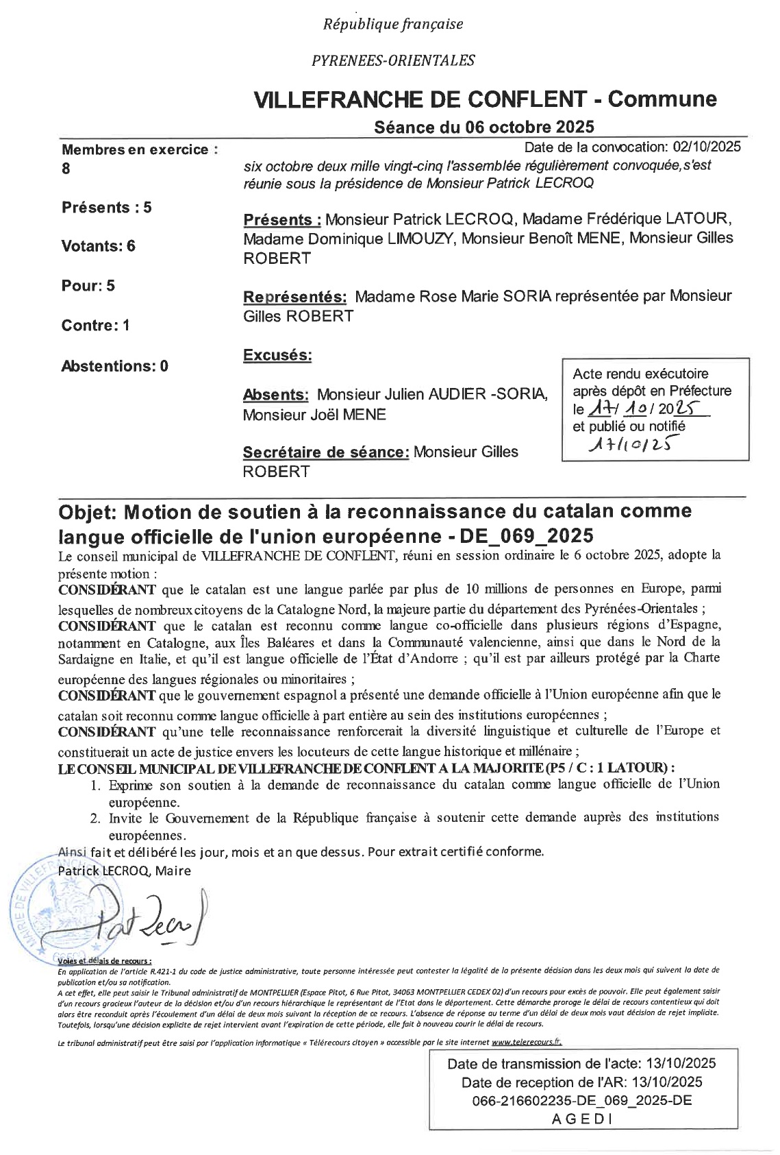 Vilafranca de Conflent adopte la motion pour la reconnaissance officielle du catalan en Europe