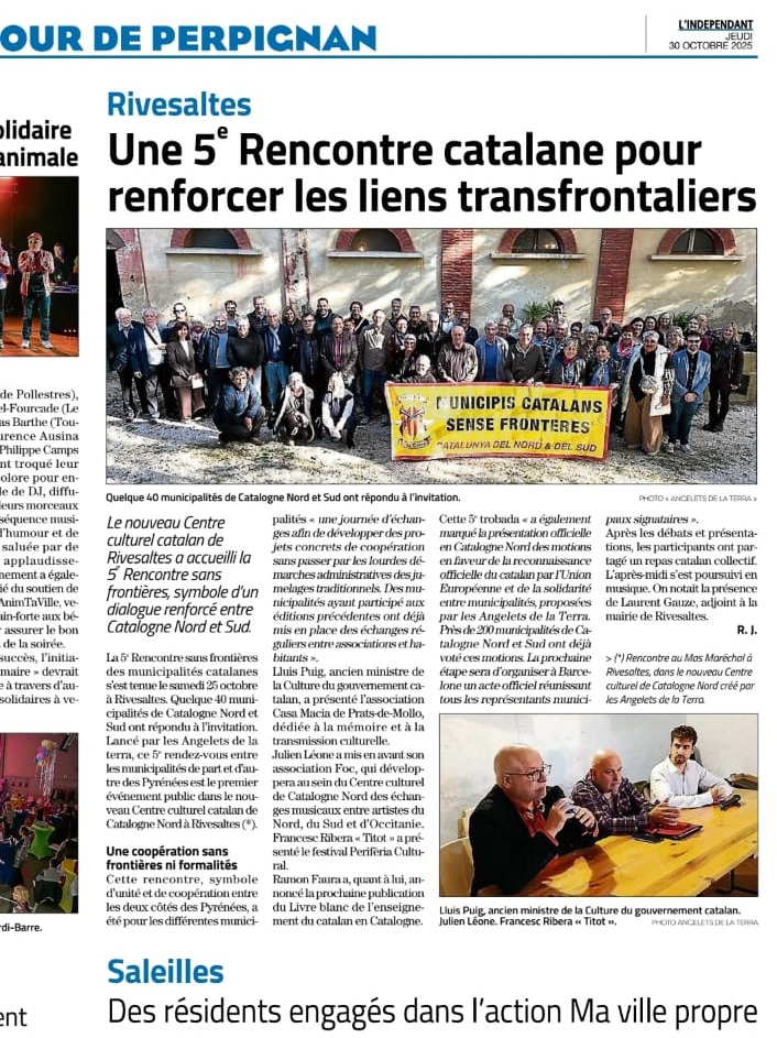 L’Indépendant, le seul journal de Catalogne Nord, consacre une demi-page à la 5e Rencontre sans Frontières des Municipalités Catalanes ! Une reconnaissance du travail accompli et de cet esprit qui nous unit, au-delà des frontières administratives.